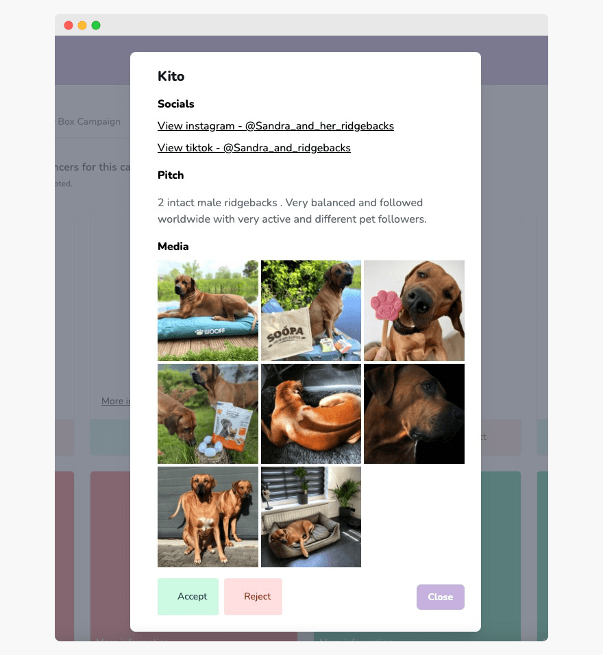 In the near future, you are also able to invite certain dogfluencers yourself via the upcoming dogfluencer search engine. This way, you can make the invitation more personal and compelling.