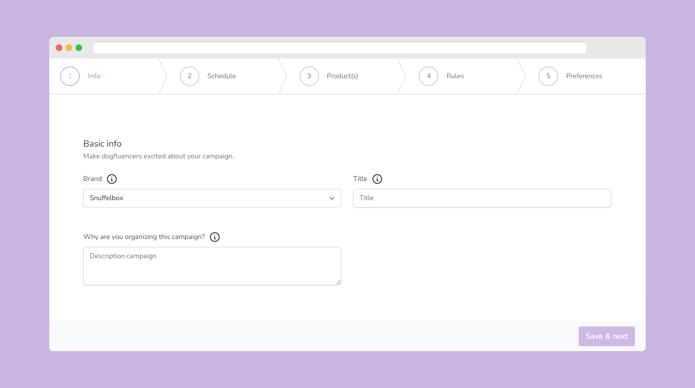 Dogfluence’s powerful software allows you to create a campaign for a product in 10 minutes. The dog influencers interested in marketing the campaign’s product or service on their social media will apply, and you can choose which doggos market your product.
