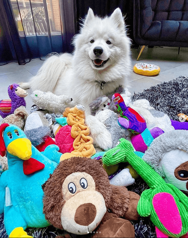Paco is a fluffy and furry Samoyed who loves being surrounded by her toys. She is one of the happiest dogs you can find on the ‘gram! She is incredibly good-looking, comfortable in front of the camera, and will make a phenomenal brand ambassador.